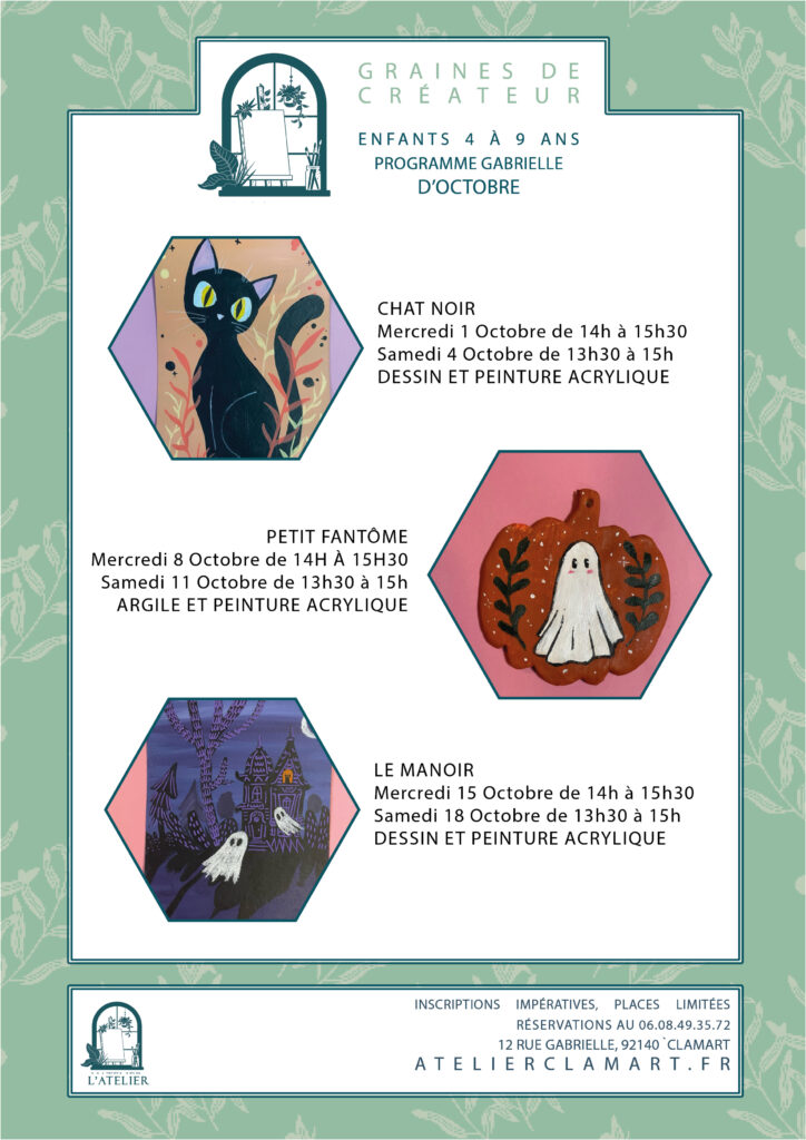 On espère que votre rentrée s’est bien passée, on est ravies de vous revoir nombreux à l’atelier ! On vous a préparé un programme bien rempli pour les vacances qui arrivent, venez fêter Halloween avec nous !